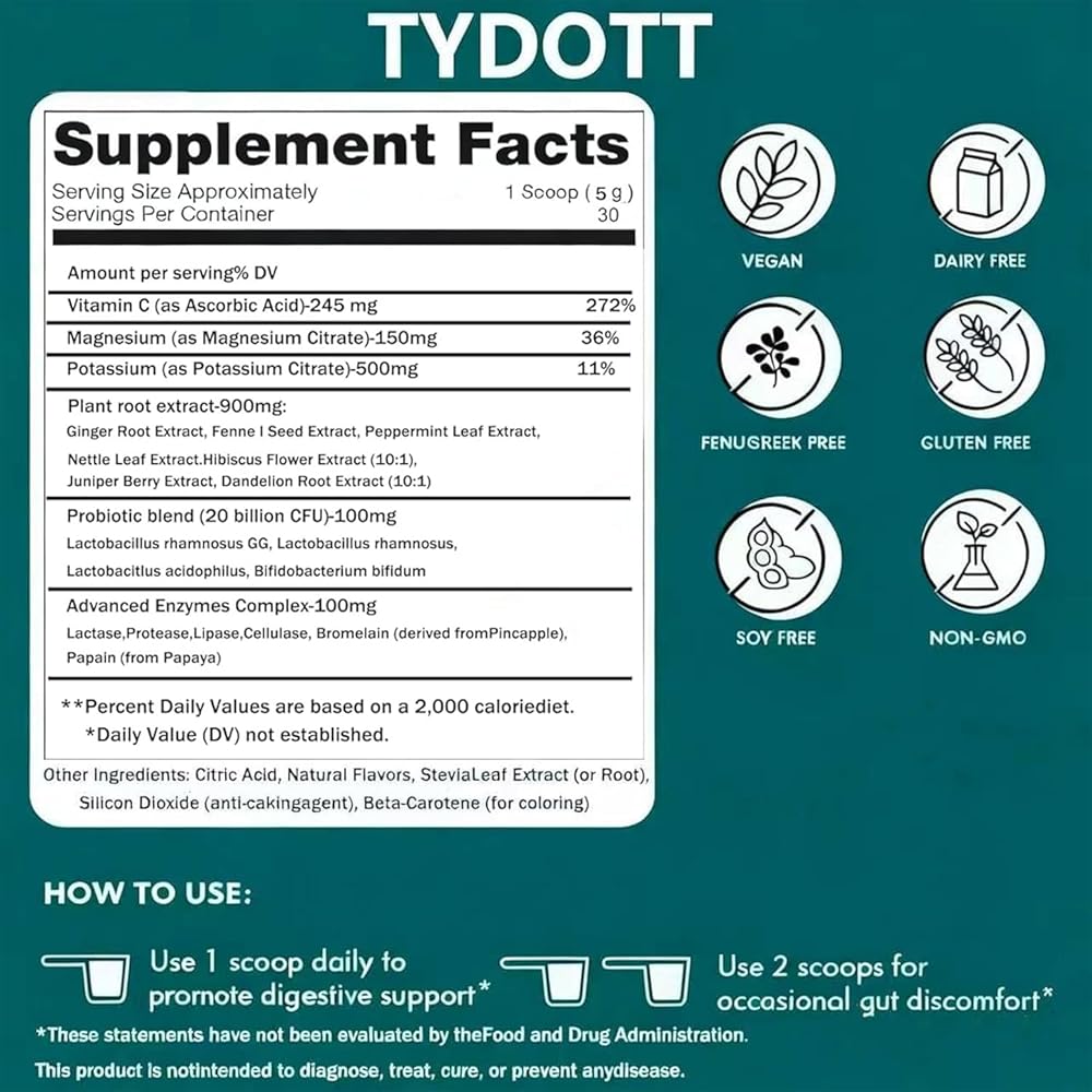 TYDOTT Debloat Pro، يحتوي على البروبيوتيك والإنزيمات الهاضمة لتخفيف الانتفاخ، ويدعم صحة الأمعاء، وامتصاص العناصر الغذائية، وراحة المعدة لدعم صحة الجهاز الهضمي