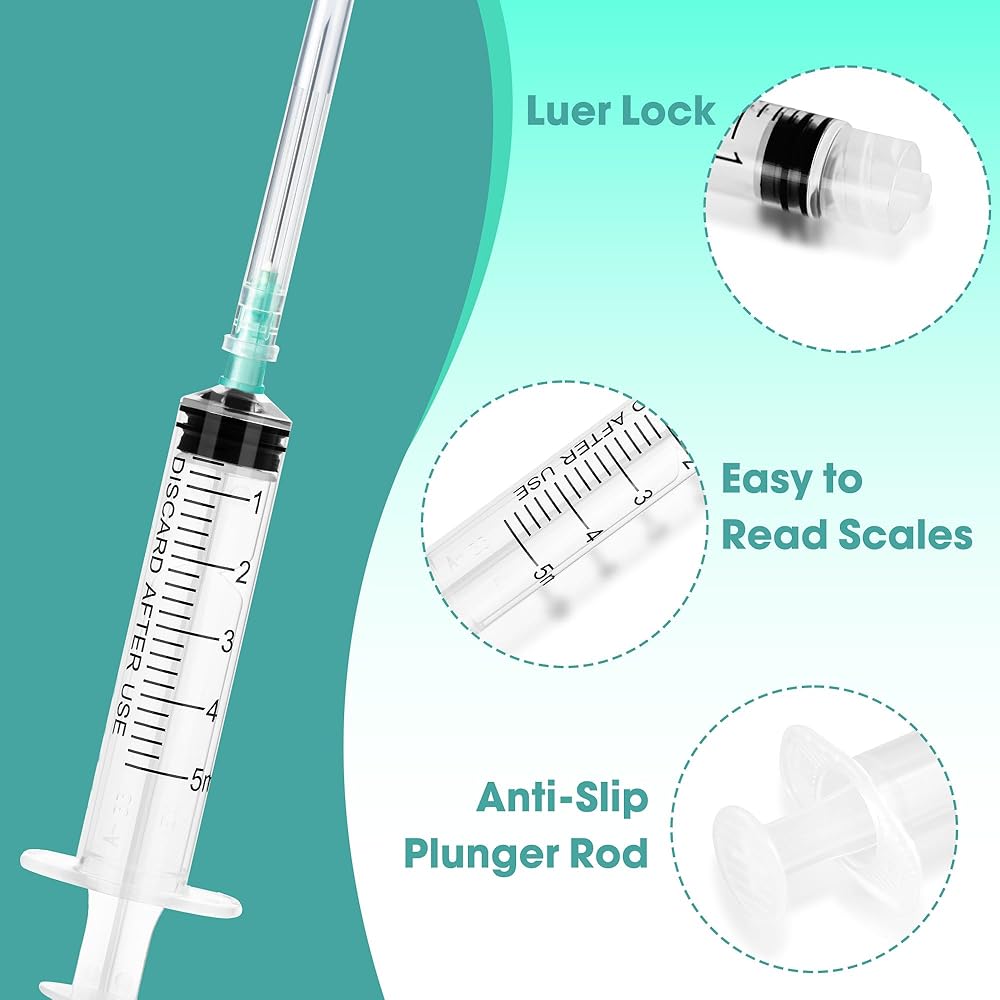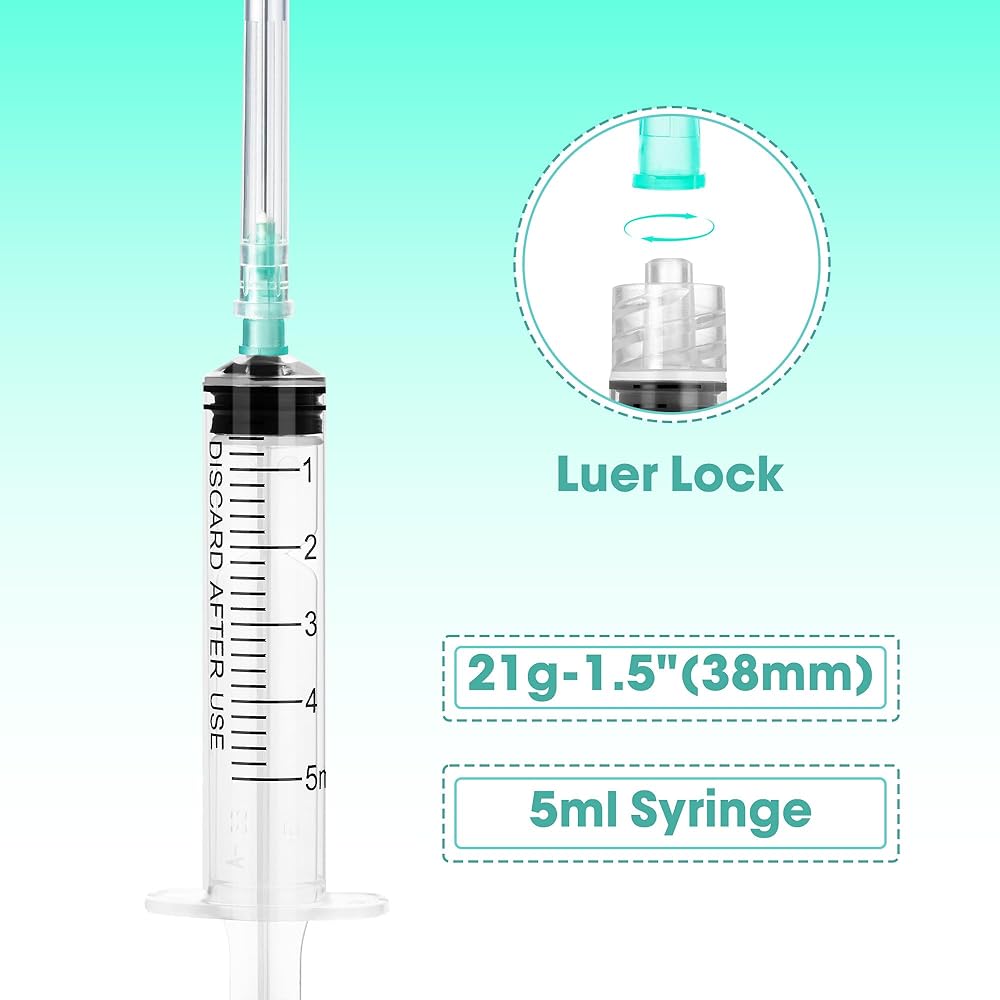• [Reliable & Consistent Quality] Each 5ml syringe with 21G 1.5 inch needle is crafted from industrial-grade plastic with a durable needle, ensuring consistent performance for fluid transfer tasks in labs