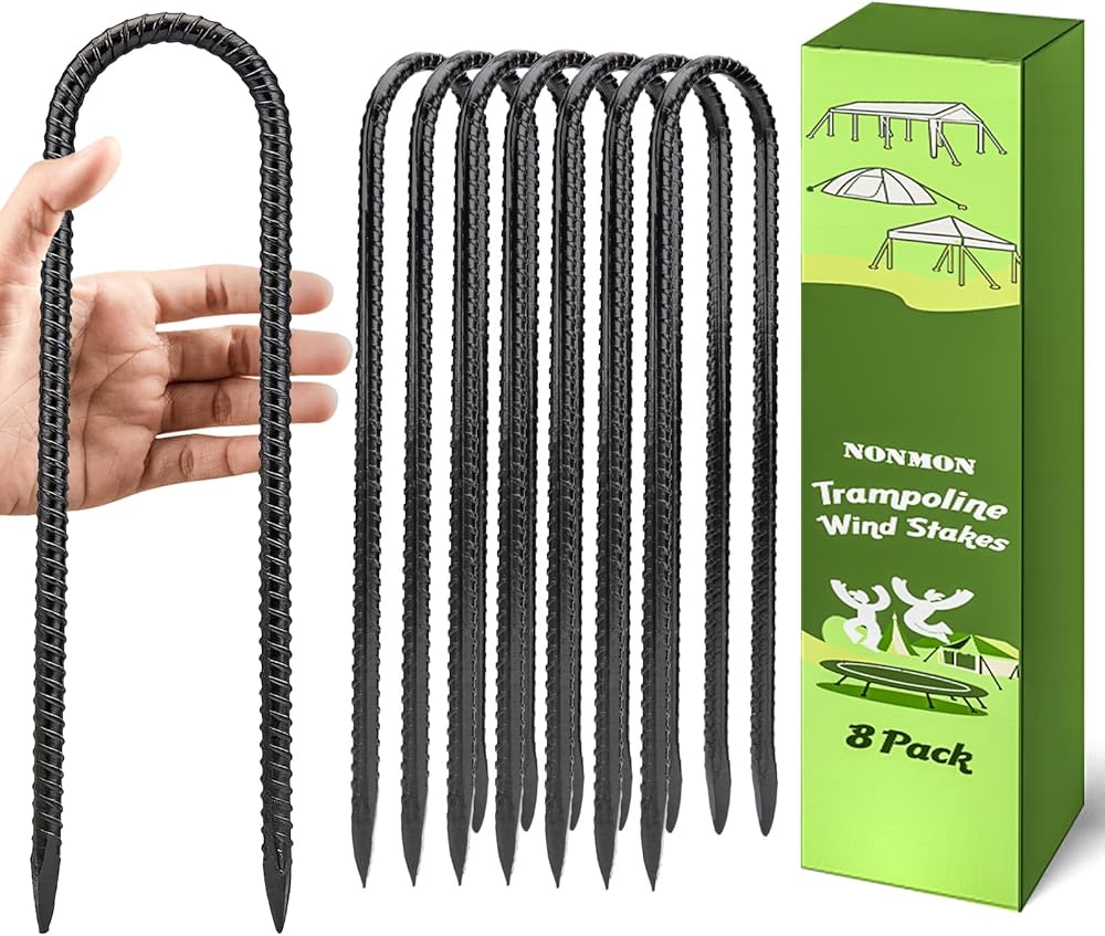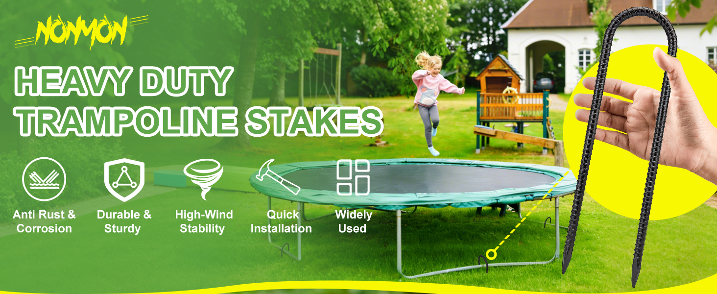 حافظ على سلامة طفلك - يجب إعطاء الأولوية لسلامة الأطفال. يمكن لأوتاد حديد التسليح على شكل حرف U مقاس 12 بوصة أن تمنع الترامبولين من الانقلاب أو التحرك أثناء الاستخدام، وتحمي الأطفال من السقوط والارتطام بالأرض.