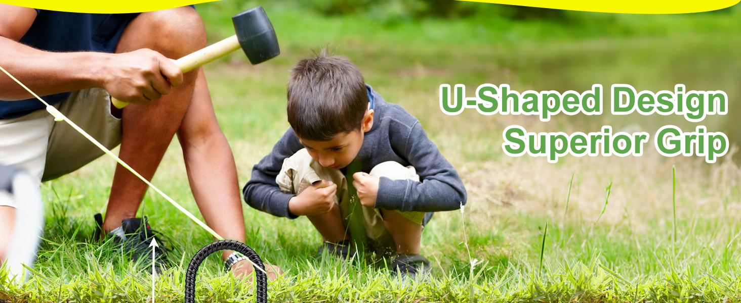 تحمل بقوة تحت الضغط - هذه الأوتاد المعدنية على شكل حرف U تلتف وتمسك بالإطار، مما يوفر ثباتًا فائقًا للترامبولين والخيام والأراجيح. يقاوم الفولاذ شديد التحمل الرياح والتحول للحفاظ على إعداداتك الخارجية آمنة في أي طقس.