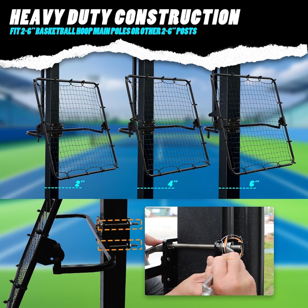UNIVERSAL GOAL POLES / OTHER POSTS FIT » Easily installs on 2-6 round or square basketball goal poles and various posts (includes wrench) – compatible with portable hoops, in-ground setups, and even fences for versatile training options.