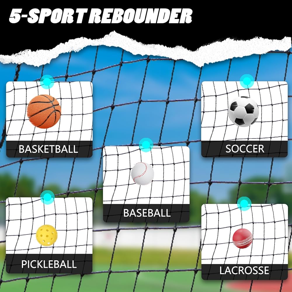 MULTI-SPORT PASSBACK REBOUNDER » Perfect for enhancing basketball passes, baseball throws, and soccer kicks – features a 48mm grid that effectively stops all balls without tangling, designed for quick kick-out drills to improve your skills.