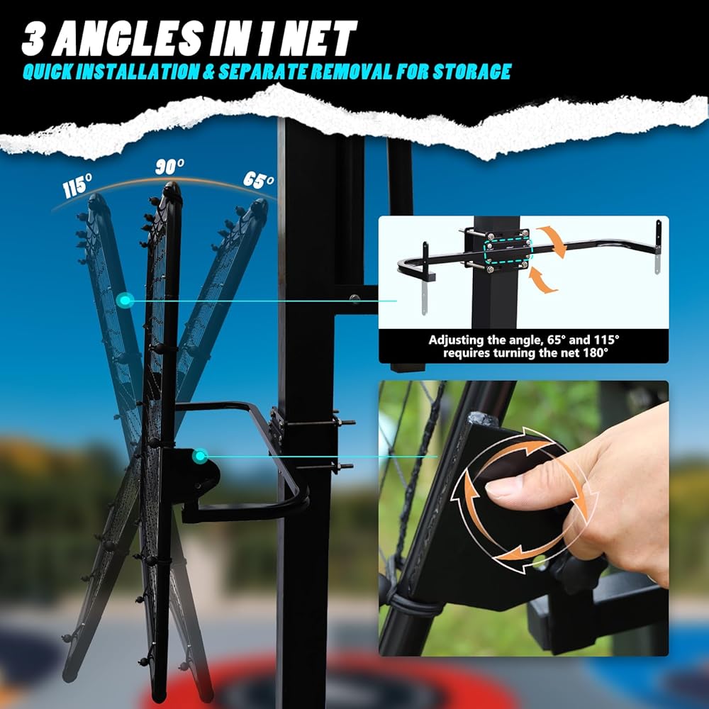HEAVY-DUTY RETURNER ATTACHMENT » Built with commercial-grade steel clamps and a durable nylon net that can withstand daily use – rainproof and designed for year-round outdoor training to ensure longevity and reliability.