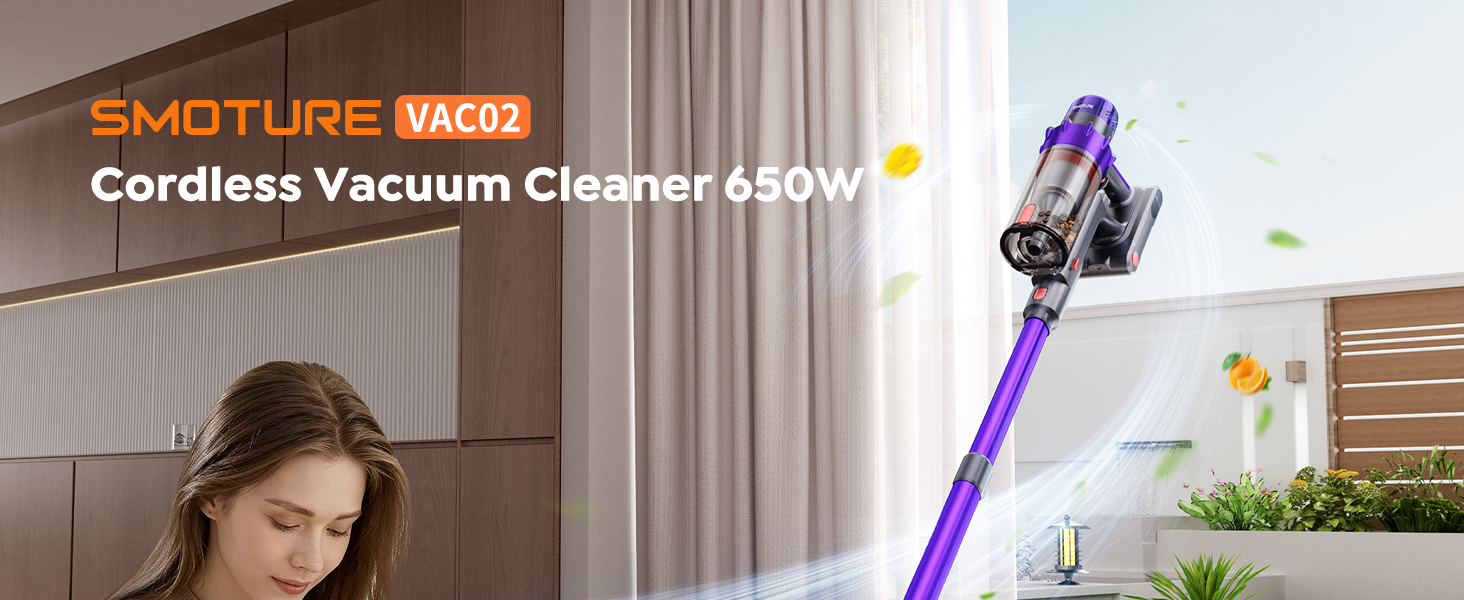 💜 [𝟲𝟱𝟬𝗪 𝟱𝟱𝗞𝗣𝗔 𝗦𝘁𝗿𝗼𝗻𝗴 𝗣𝗼𝘄𝗲𝗿𝗳𝘂𝗹 𝗦𝘂𝗰𝘁𝗶𝗼𝗻] تم تجهيز المكنسة الكهربائية اللاسلكية VAC02 المطورة بمحرك بدون فرش بقدرة 650 وات، مما يوفر ما يصل إلى 55 كيلو باسكال من قوة الشفط، والتي يمكنها بسهولة إزالة الغبار والحطام وشعر الحيوانات الأليفة من السجاد والأرضيات الصلبة والبلاط، مما يحقق تنظيفًا عميقًا وفعالاً.