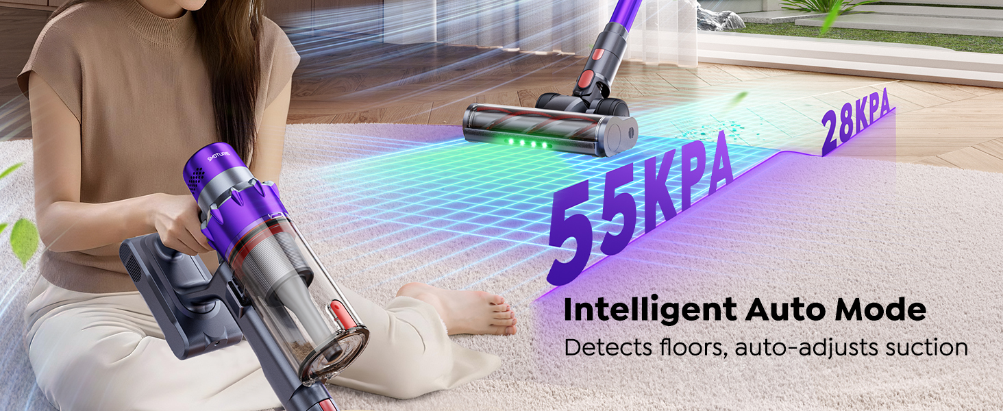 💜 [𝐂𝐨𝐥𝐨𝐫 𝐓𝐨𝐮𝐜𝐡 𝐒𝐜𝐫𝐞𝐞𝐧 & 𝐀𝐔𝐓𝐎 𝐌𝐨𝐝𝐞𝐬] تتميز المكنسة الكهربائية المحمولة باليد شاشة LED ذكية تعمل باللمس، مما يسمح لك بسهولة تبديل أوضاع الشفط ومراقبة تشغيل المكنسة الكهربائية في أي وقت. في الوضع التلقائي، يمكن لهذه المكنسة الكهربائية اللاسلكية التعرف على السجاد والأرضيات الصلبة بذكاء وضبط قوة الشفط وفقًا لذلك للحصول على نتائج تنظيف مثالية.