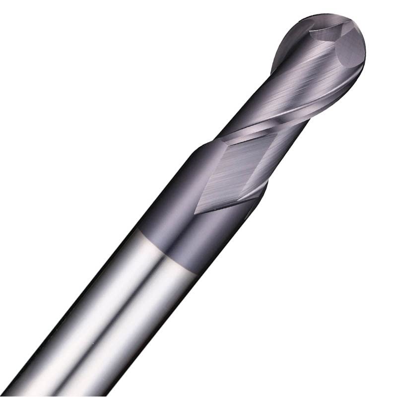 Ball end cut 2-flute design spiral chip space design for fast and clean chip removal. Sharp cutting edge provides smooth cutting.