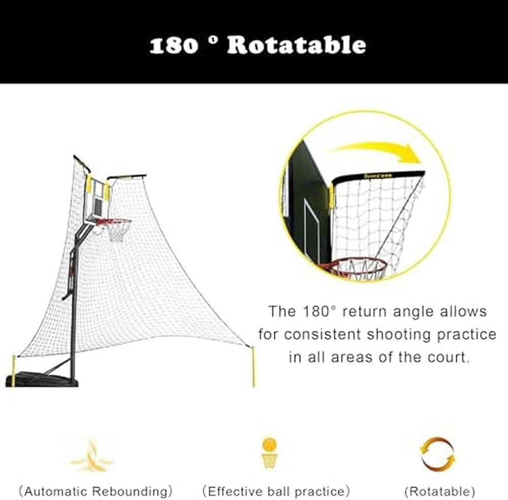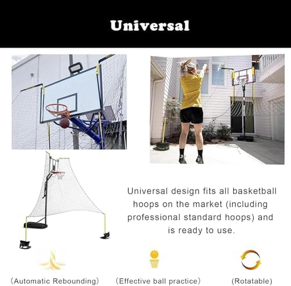 Enhances Practice Efficiency --- The basketball rebounder is crafted to boost your practice sessions by returning the ball directly to you enabling continuous shooting without interruption. Ideal for mastering 3-pointers jump shots and free throws it's perfect for solo or duo practice sessions.