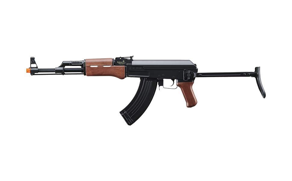 بندقية لانسر التكتيكية AK47 AEG Airsoft مع مخزون قابل للطي Gen 1 LT-728 - معدن كامل، إطار عالي في الثانية، بطارية وشاحن متضمن (أسود/خشب صناعي) - 600 جولة