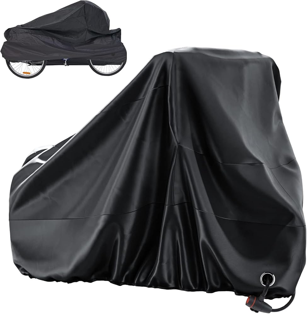 غطاء دراجة مقاوم للماء للدراجات ثلاثية العجلات والدراجات، غطاء تخزين خارجي مع حماية من الأشعة فوق البنفسجية، فتحة قفل، حاشية مرنة، حزام إبزيم وحقيبة تخزين، يناسب الدراجات ثلاثية العجلات والدراجات الكبيرة in Kuwait