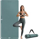 Extended and Widened Pilates Mat: This yoga mat measures 76"L x 33"W x 0.4"Th. The extended and slightly wider mat provides ample space for tall individuals and those engaging in high-intensity workouts, allowing you to comfortably stretch your body during various yoga, Pilates, and exercise poses.