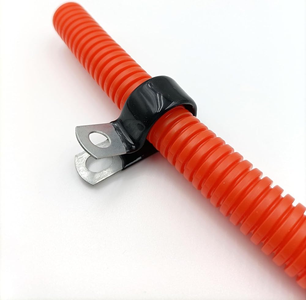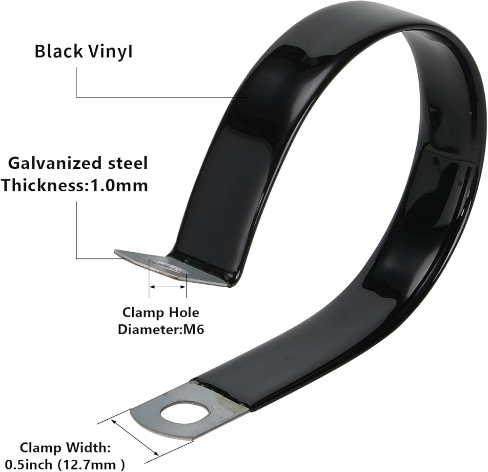 Vinyl Dipped Clamps are galvanized steel clamps with black vinyl coating. They are constructed for extreme durability even under the harshest conditions with medium and heavy duty loop-type steel clamps. A screw hole allows users to close the clamp around hoses, wires, pipes, and more, and then mount them to a wall or other surface.