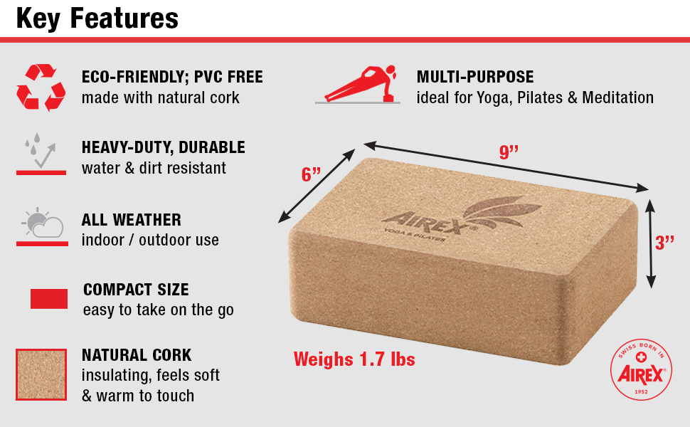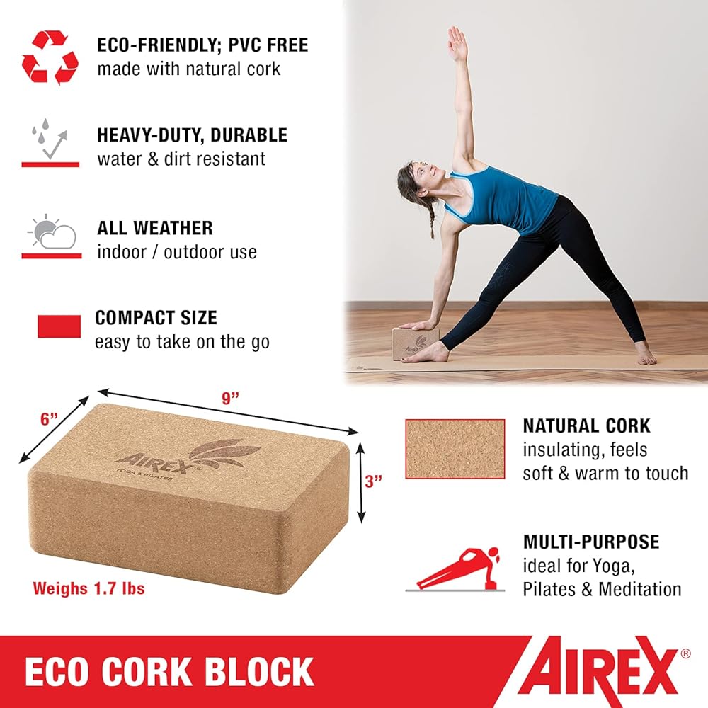 AIREX EXERCISE MAT ACCESSORY: The Airex Eco line of exercise mats are premium mats that provide the simplistic surface hat you need for yoga, Pilates, floor exercises, stretching, meditation and more. Now, you can get the most out of these exercises with the ECO Cork Premium block accessory.