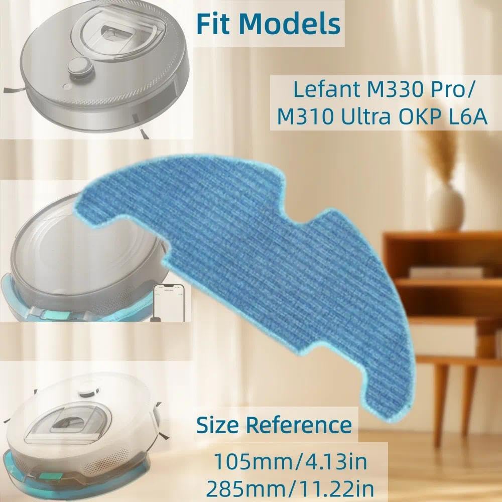 Upgrade your robot vacuum mopping performance with these high-quality replacement mop pads, designed for Lefant M330 Pro, M310 Ultra, and OKP L6A models. Each pack includes 6 durable microfiber mop cloths that offer superior absorbency and trapping of fine dust and liquid spills. Crafted from washable and reusable material, these pads can be easily cleaned in the washing machine, saving you time and money over disposable alternatives.