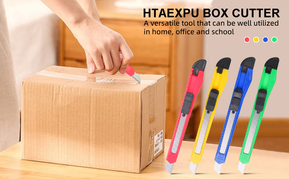 4 قطع من سكاكين قطع الصناديق، سكاكين المساعدة من الجيل الثالث، فتاحة شفرات الحلاقة، سكاكين المساعدة، قواطع الصناديق القابلة للسحب، سكين عمل صغير من Htaexpu