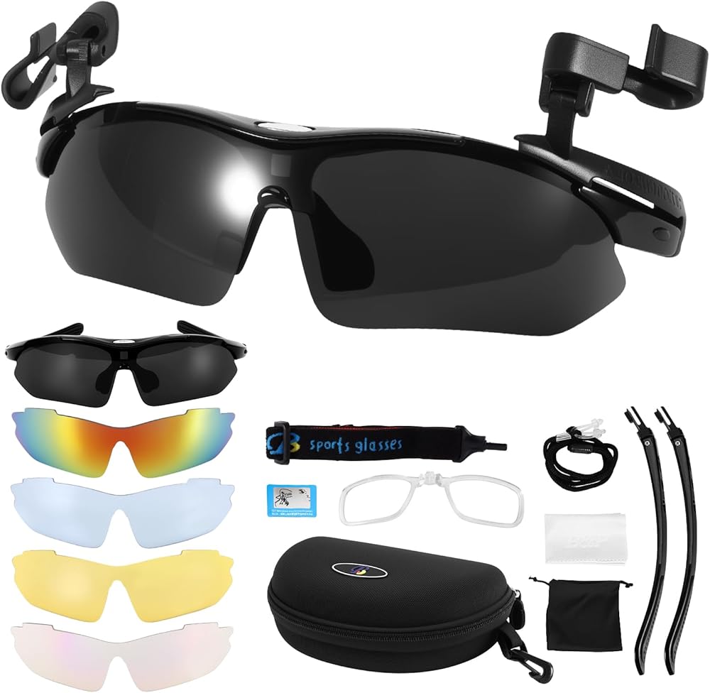 نظارات شمسية مستقطبة للاستخدام الخارجي، 3 في 1 نظارات شمسية يمكن ارتداؤها/مثبتة على الرأس، نظارات شمسية رياضية بمشبك للحماية من الأشعة فوق البنفسجية 400 مع 5 عدسات قابلة للتبديل لصيد الأسماك وركوب الدراجات والسفر والمشي لمسافات طويلة والتسلق