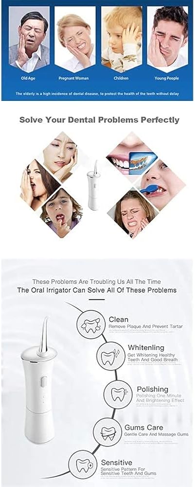 3 MODES AND ROTATABLE NOZZLE DESIGN: Normal, Gentle and Pulse modes to meet various oral care needs. The 360° rotatable nozzle design allows you to easily clean the areas that are difficult to reach and prevents tooth decay, dental plaque, dental calculus, gingival bleeding and dental hypersensitivity