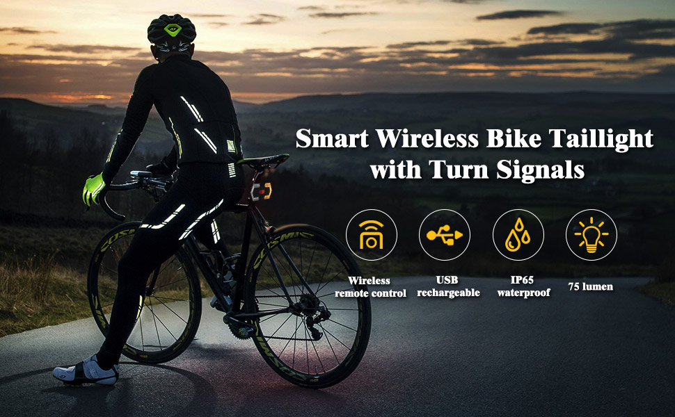 إشارة الانعطاف الخلفية للدراجة الذكية - أضواء أمامية وخلفية، ضوء تحذير للدراجة، ضوء وامض آمن قابل للشحن عبر USB مقاوم للماء لركوب الدراجات على الطرق