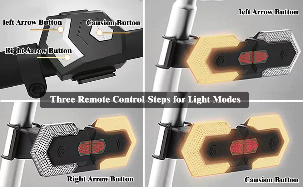 • 🚴[وحدة تحكم ذكية] - مجهزة بجهاز تحكم عن بعد ذكي، يمكنها التحكم بسهولة في أضواء إشارة الانعطاف اليسرى واليمنى، وأضواء الطوارئ وأدلة التحذير، وتحذير المشاة والمركبات في الليل أو الأيام الممطرة لضمان السلامة.