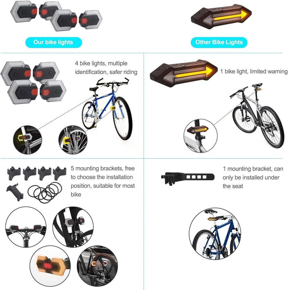 • 🚵‍♀️【سهلة التركيب ومقاومة للماء IPX6】- مجموعة إشارة انعطاف الدراجة الخاصة بنا سهلة التركيب على الإطار وتتميز بمقاومة الماء IPX6 حتى تتمكن من الركوب تحت المطر أو الطقس العاصف أو عبر البرك دون قلق.