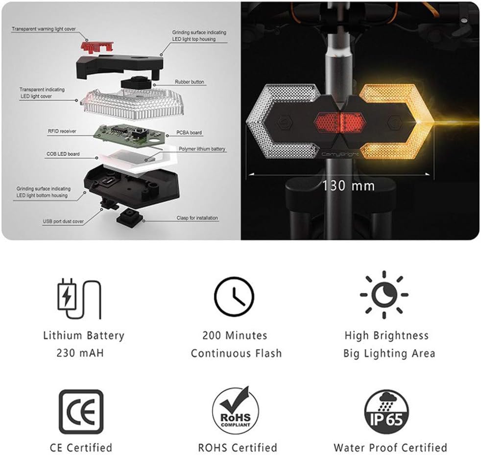 • 🚴‍♂️ 【رؤية ساطعة ليلا ونهارا 】- توفر إضاءة LED دعمًا مرئيًا للغاية من 50 إلى 100 متر لضمان حركة المرور القادمة والأشخاص خلفك يعرفون متى تنعطف أو تغير الممرات أو تقوم بحركة.
