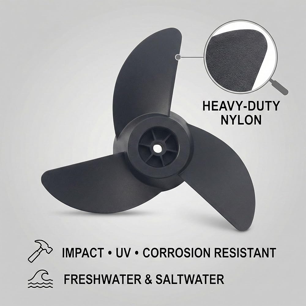【دفع قوي وهادئ بثلاث شفرات】: تصميم فعال بثلاث شفرات يوفر قوة دفع قوية، وتسريع سلس، وتحسين التعامل مع القارب أثناء الجري هادئ للغاية للصيد الخفي، حتى في المياه الضحلة.