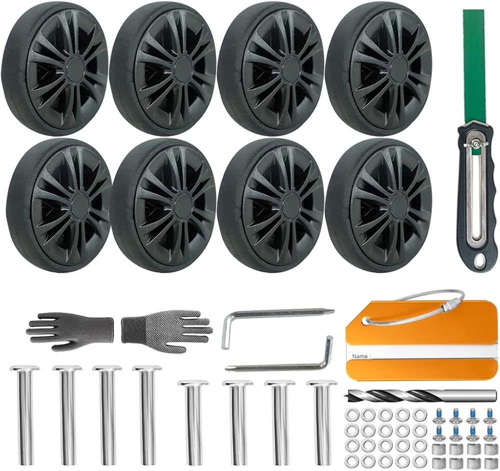 【ملحقات غنية】تأتي مجموعة إصلاح العجلات المزدوجة لحقيبة السفر مع قفازات بنقاط مطاطية مضادة للانزلاق، وبطاقة الأمتعة، وقطعة مثقاب، ومنشار. مثالي لهذا المنصب! عند تغيير إطار حقيبة الحمل، استخدم القفازات عند القيام بالأعمال اليدوية للعمل بأمان وأمان. لا يمكن استخدام النوعين من مفاتيح الربط السداسية، مفتاح ربط فيليبس ومفتاح ربط الرأس المسطح، عند تثبيت العجلات فحسب، بل يمكن أيضًا استخدامهما بكفاءة لإزالة غطاء العجلة.