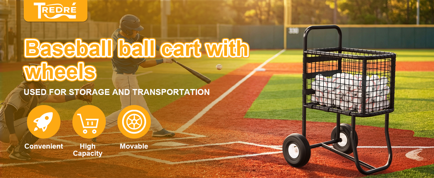 عربة البيسبول Tredre ذات العجلات - تحمل أكثر من 300 كرة بيسبول أو 150 كرة لينة، وعجلات لجميع التضاريس مقاس 10.5 بوصة، وعربة نقل الكرة ذات سعة كبيرة للتدريب ويوم اللعب والحقول