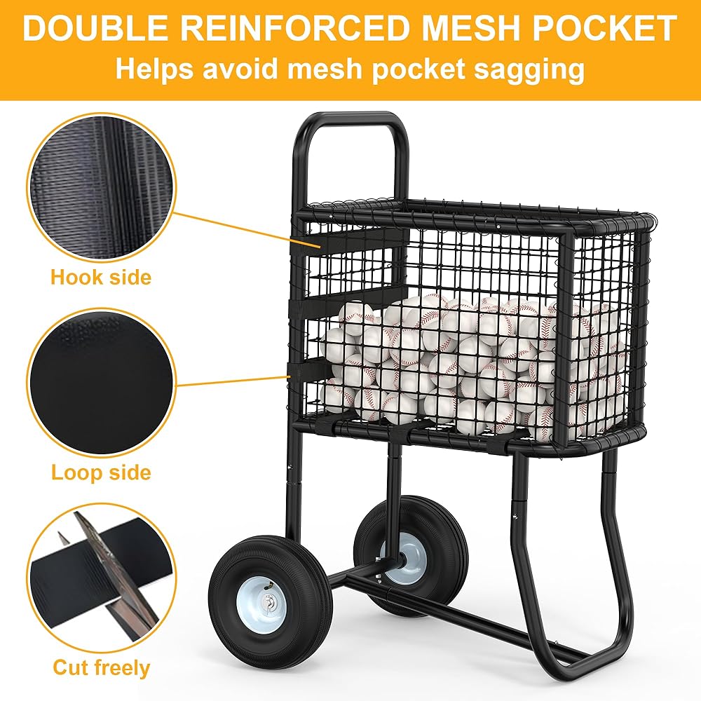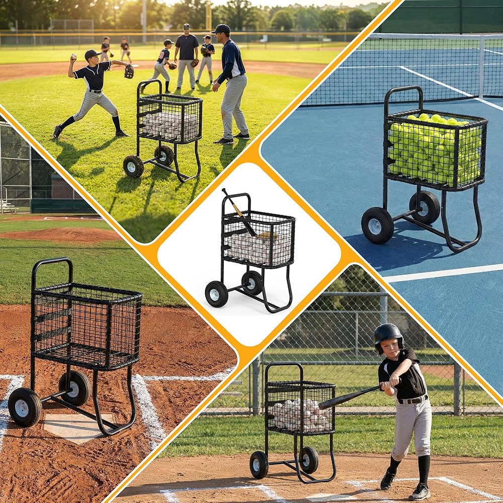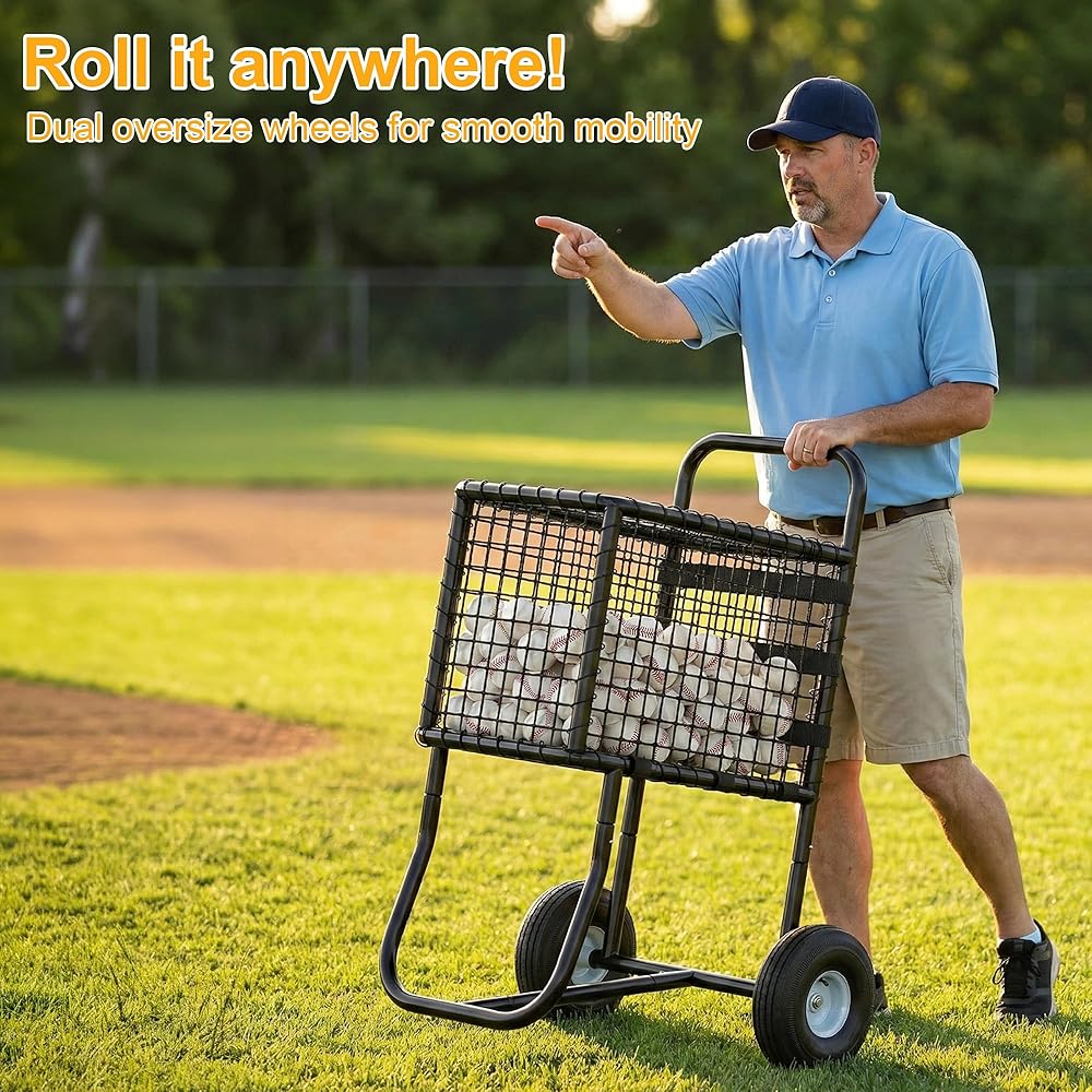 سعة كبيرة جدًا - تحمل أكثر من 300 كرة بيسبول أو 150 كرة لينة: سلة واسعة (17.7 بوصة × 17.7 بوصة × 25.6 بوصة) من عربة البيسبول لدينا تخزن بسهولة أكثر من 300 كرة بيسبول أو 150 كرة لينة. مثالية لتخزين الكرة في الهواء الطلق، وممارسات الفريق، والتدريب الميداني، وأقفاص الضرب، ونقل الكرة في يوم اللعب.