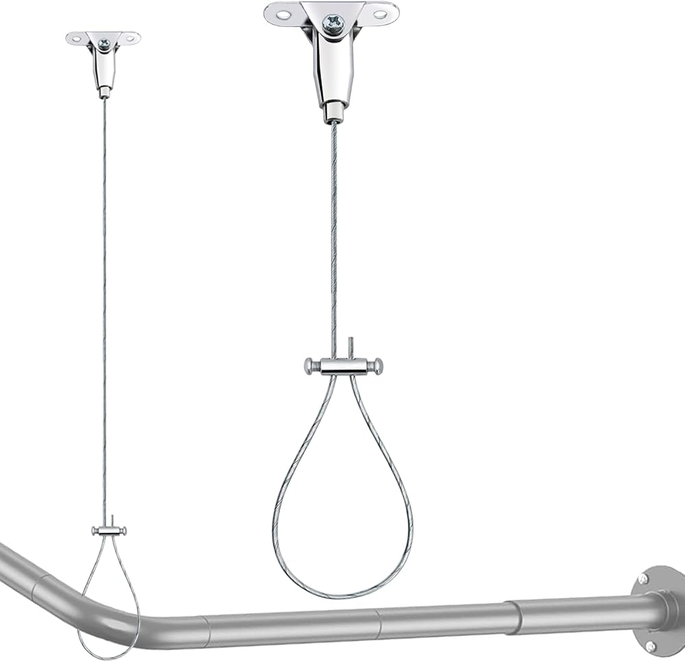 Secure & Worry-Free Stability - Designed with a robust ceiling mount structure, this support secures tightly your shower rod in place, eliminating wobbles and preventing accidental slips. The coated stainless steel cable protects your rod from pressure points and scratches, extending the life of both the support and your rod.
