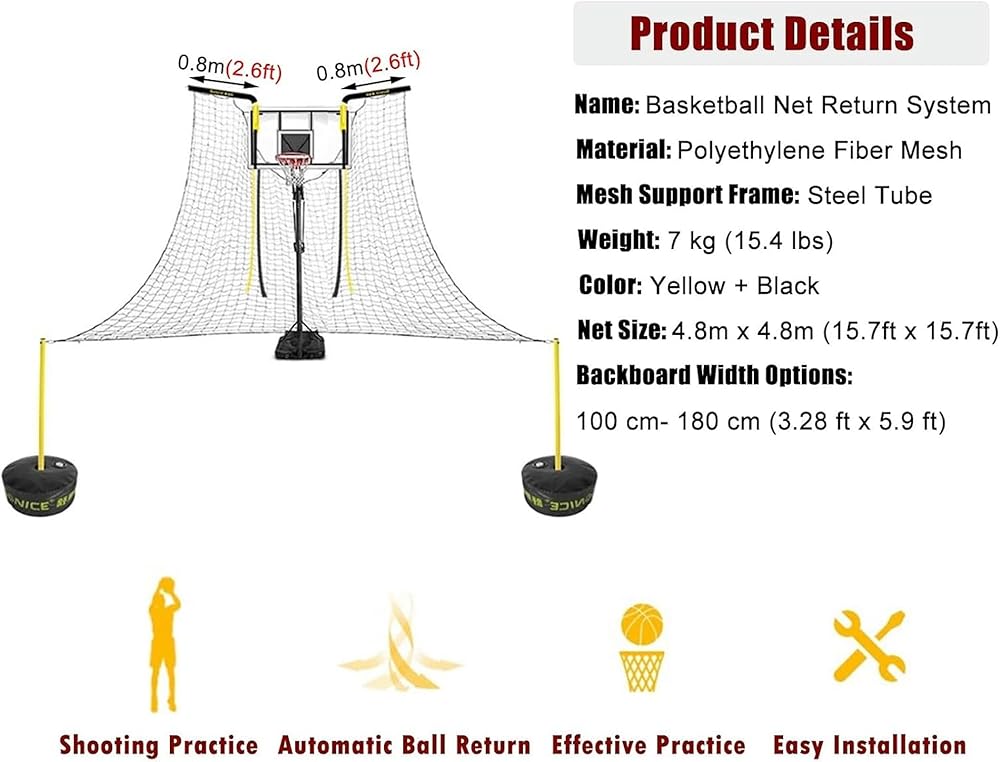 ??【 Metal Basketball Shot Return System 】 The basketball return net system is made of a sturdy steel frame and includes a visible black rebounder net, which is stable and highly weather-resistant, suitable for indoor and outdoor use.