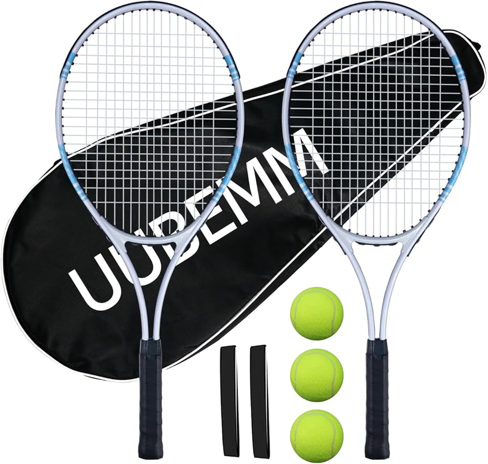 【مجموعة مضارب التنس 】 تتضمن مضارب تنس مربوطين مسبقًا مقاس 27 بوصة، و3 كرات تنس، وحقيبة حمل واحدة، ومقبضين زائدين. مثالية للتخزين وسهلة الحمل، مما يجعلها مثالية للأصدقاء أو العائلات أو الأزواج للاستمتاع بالتنس معًا.
