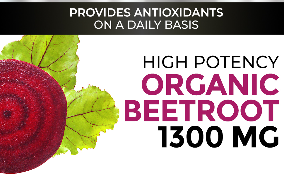 مستويات عالية من مضادات الأكسدة: مكمل الشمندر العضوي الخاص بنا، المليء بمضادات الأكسدة القوية، يساعد على مكافحة الإجهاد التأكسدي، وحماية خلايا الجسم. إنه يعزز الحيوية، ويعزز الصحة العامة، ويعزز الصحة الطبيعية لأسلوب حياة نابض بالحياة