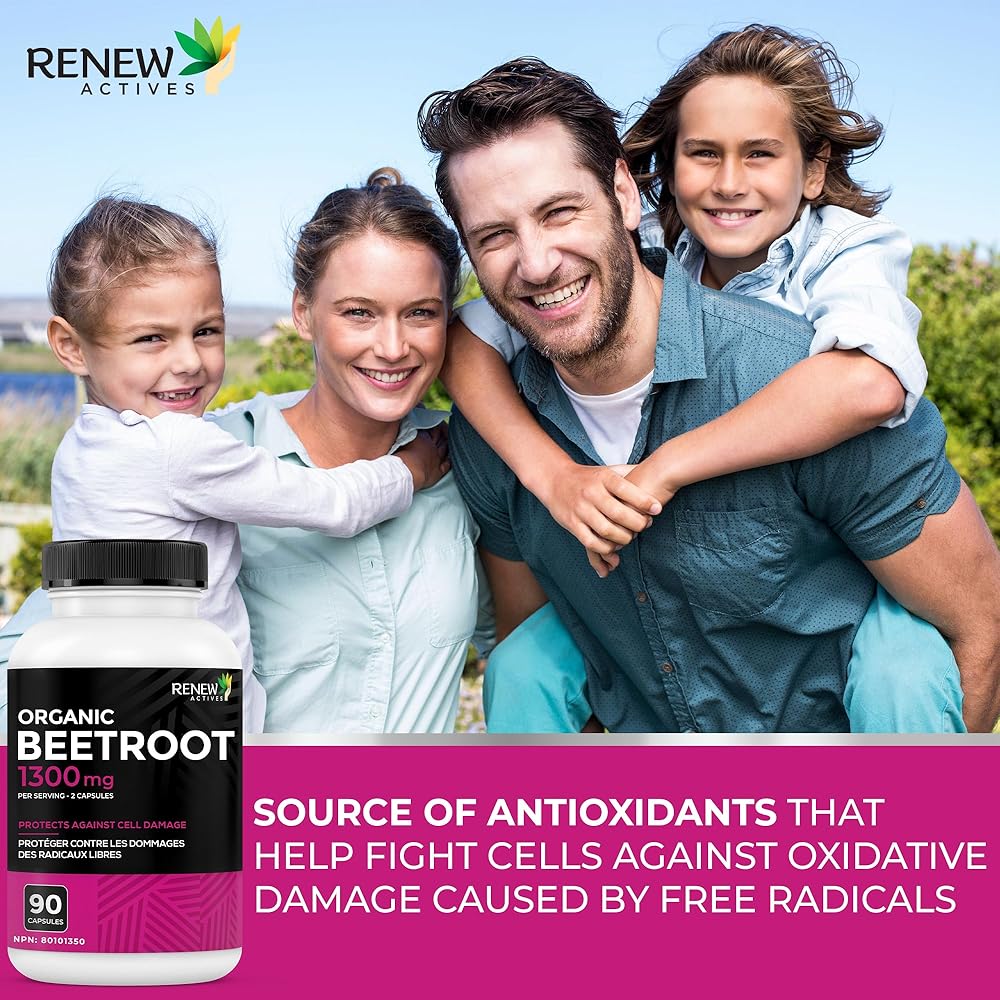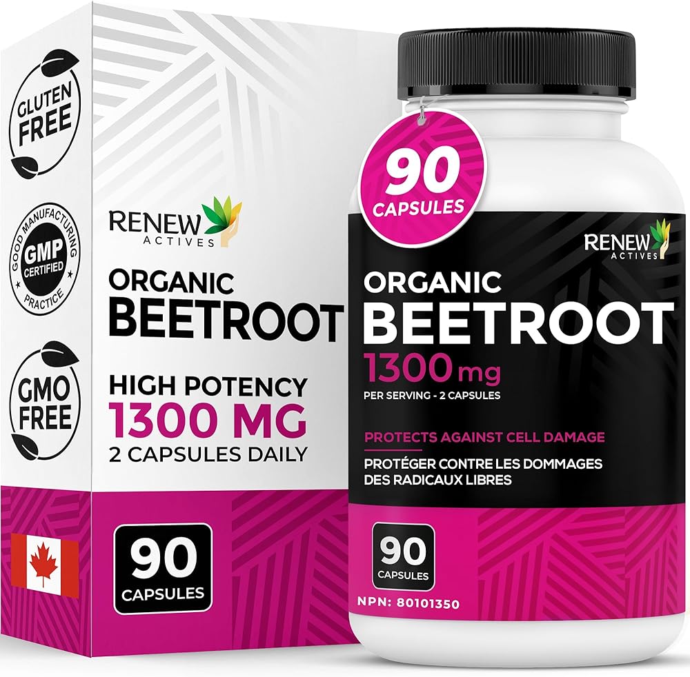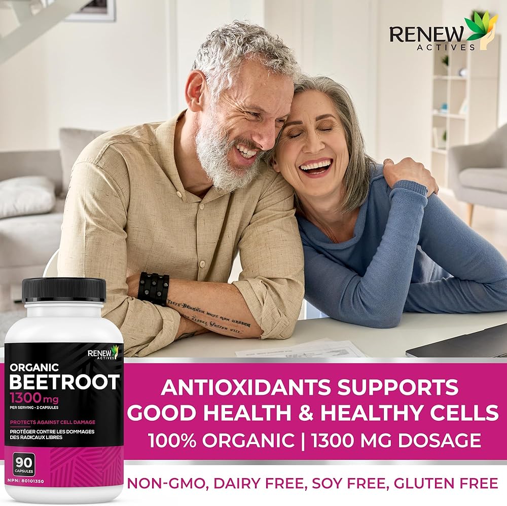 تعزيز الصحة العامة: يوفر مكمل الشمندر العضوي Renew Actives العناصر الغذائية المغذية التي تعزز التوازن الطبيعي لجسمك. إنه يعزز الحيوية، ويساعدك على الحفاظ على نمط حياة صحي مع زيادة الطاقة والرفاهية العامة يوميًا