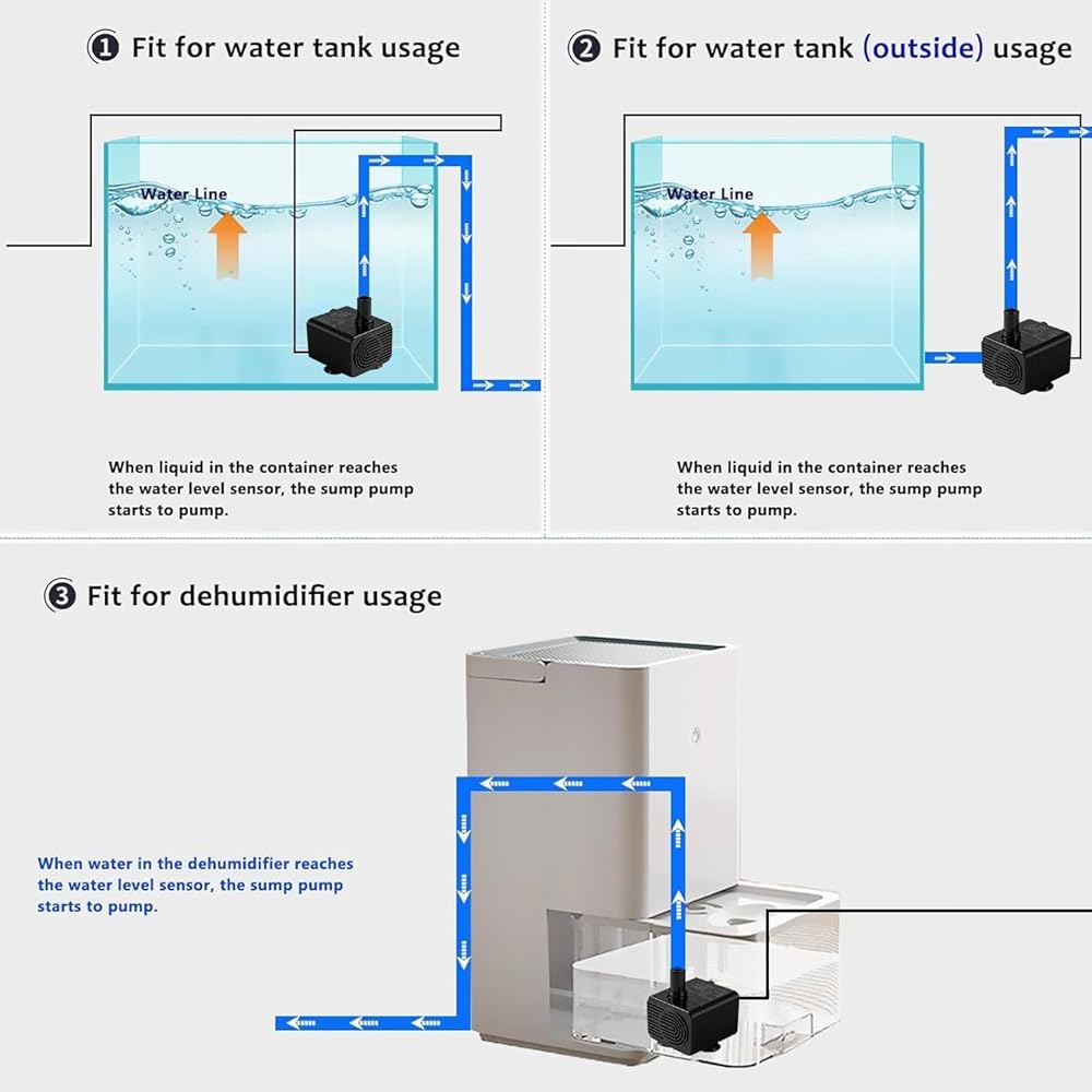 Ultra-quiet operation: This submersible pump is compact, efficient, and designed for silence. Specifically engineered for indoor environments, it operates with noise levels below 15 decibels, making it virtually inaudible and perfectly suited for bedrooms, study rooms, offices, or any space requiring tranquility. It can be seamlessly paired with your portable air conditioner or dehumidifier, providing continuous and efficient drainage while completely eliminating noise disturbances, safeguarding your moments of peace.