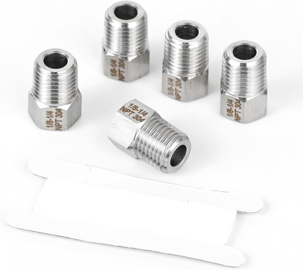 NPT3/8-NPT1/4 heavy-duty bushing fittings, Made of stainless steel 304 hexagonal bars, They are suitable for turning pipes into small diameters. It can be used for reducer adapters, Air fittings, Faucet supply lines.