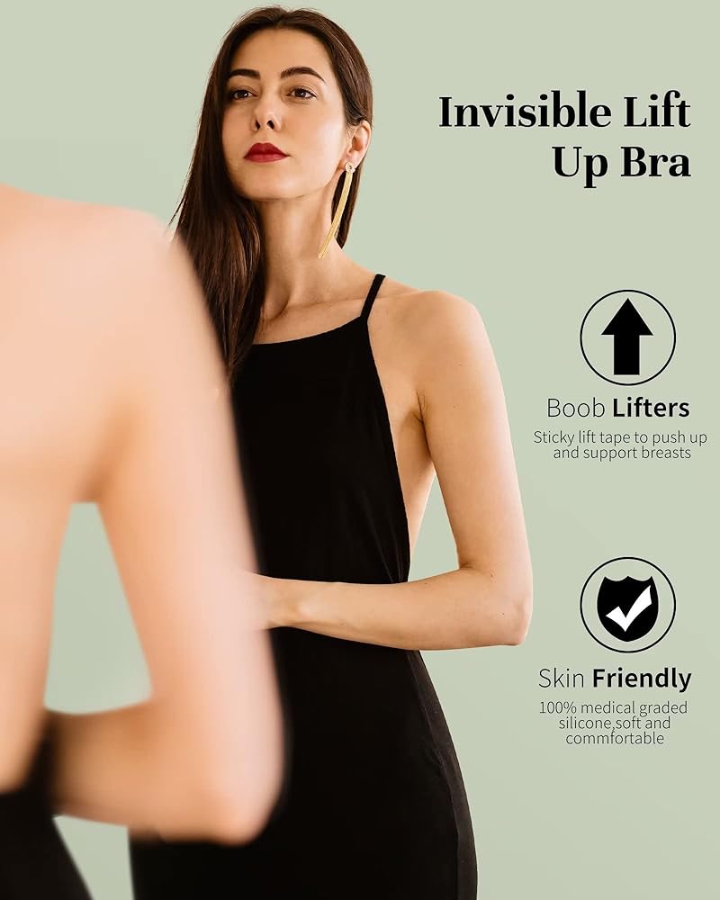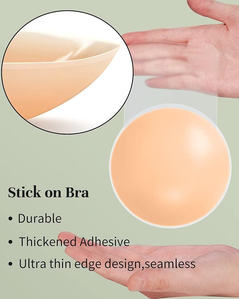لاصقة وقابلة لإعادة الاستخدام: تتميز حمالات الصدر النسائية ذات الرفع بتصميم أكثر سمكًا وحواف رفيعة توفر حماية شاملة للحلمات الحساسة. يبقى اللاصق القوي في مكانه ويمكن إعادة استخدامه عدة مرات، مما يجعله خيارًا فعالاً من حيث التكلفة.