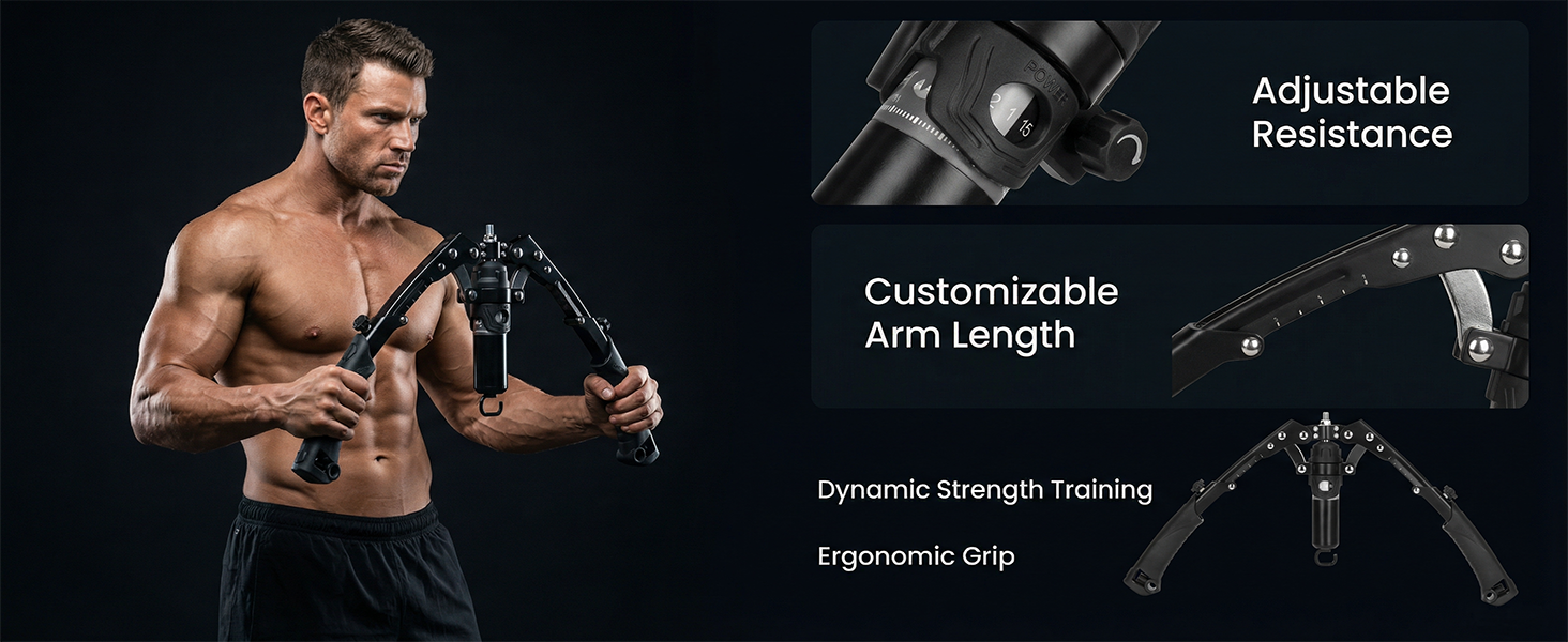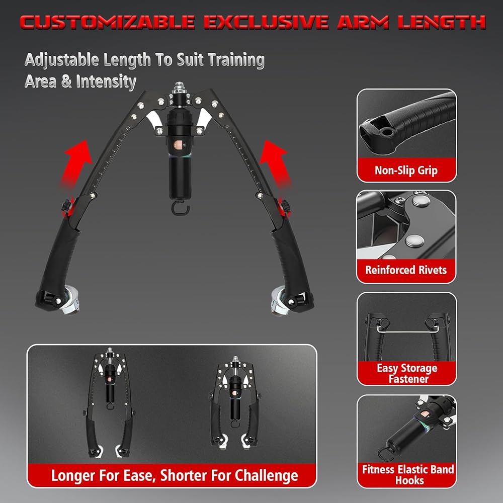 طول ذراع قابل للتعديل يناسب جميع أنواع الجسم: يتميز مدرب الذراع الهيدروليكي هذا بذراع تدريب منزلق وقابل للتعديل بحرية والذي يغير عرض القبضة ونطاق المقاومة على الفور. إنه يناسب المستخدمين من جميع أنواع الجسم، وهو مناسب لكل من الرجال والنساء، ويتكيف مع تدريب مجموعات العضلات المختلفة، مما يضمن الشكل المناسب مع كل تمرين.