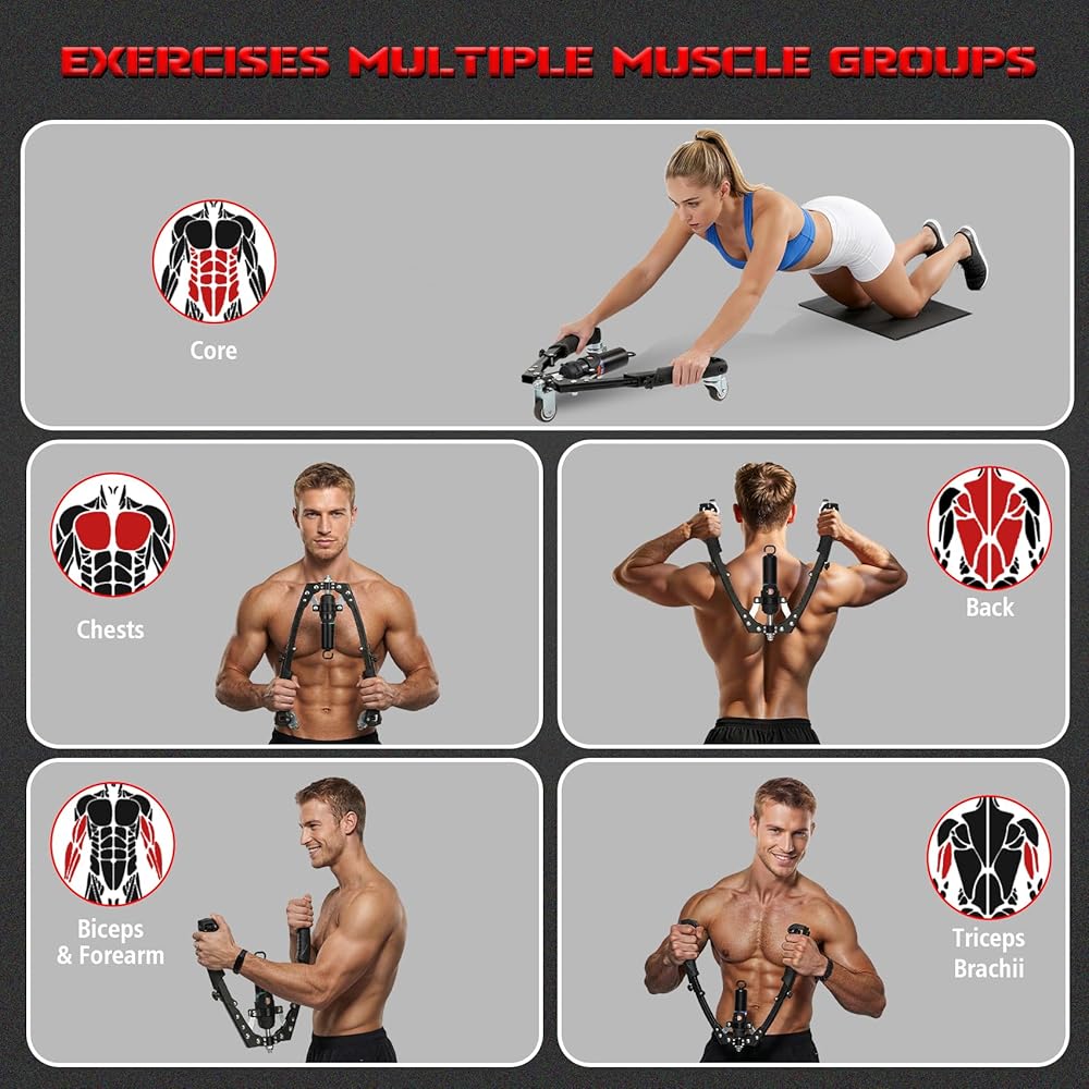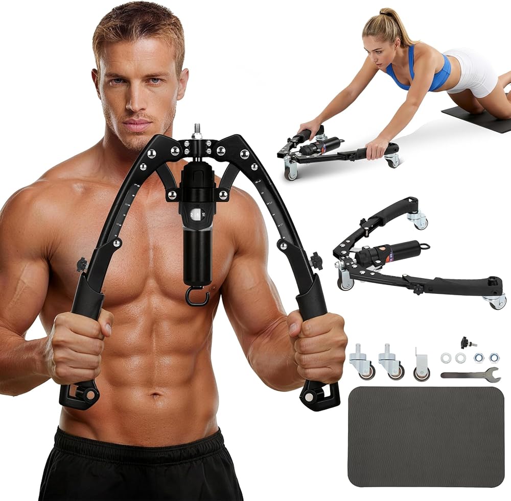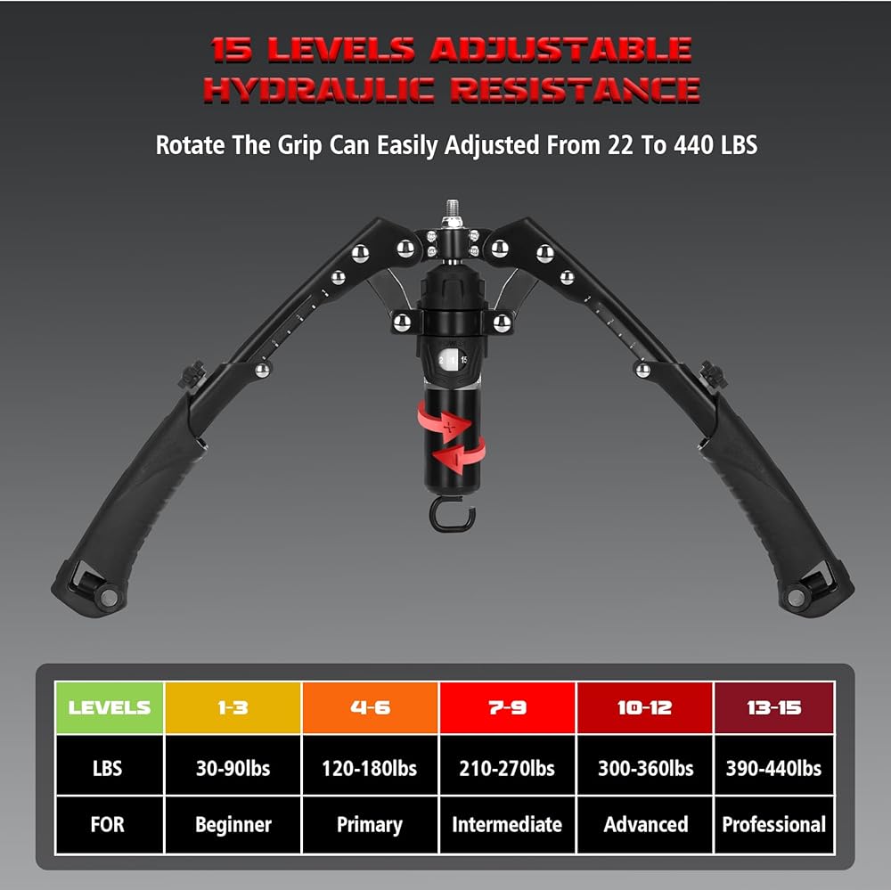 جهاز تدريب الذراع تويستر، جهاز تمرين الصدر الهيدروليكي 3 في 1 قابل للتعديل (22-440 رطلاً) مع بكرة آب وخطافات شريط المقاومة، معدات رياضية منزلية للرجال والنساء لتدريب قوة الجسم بالكامل