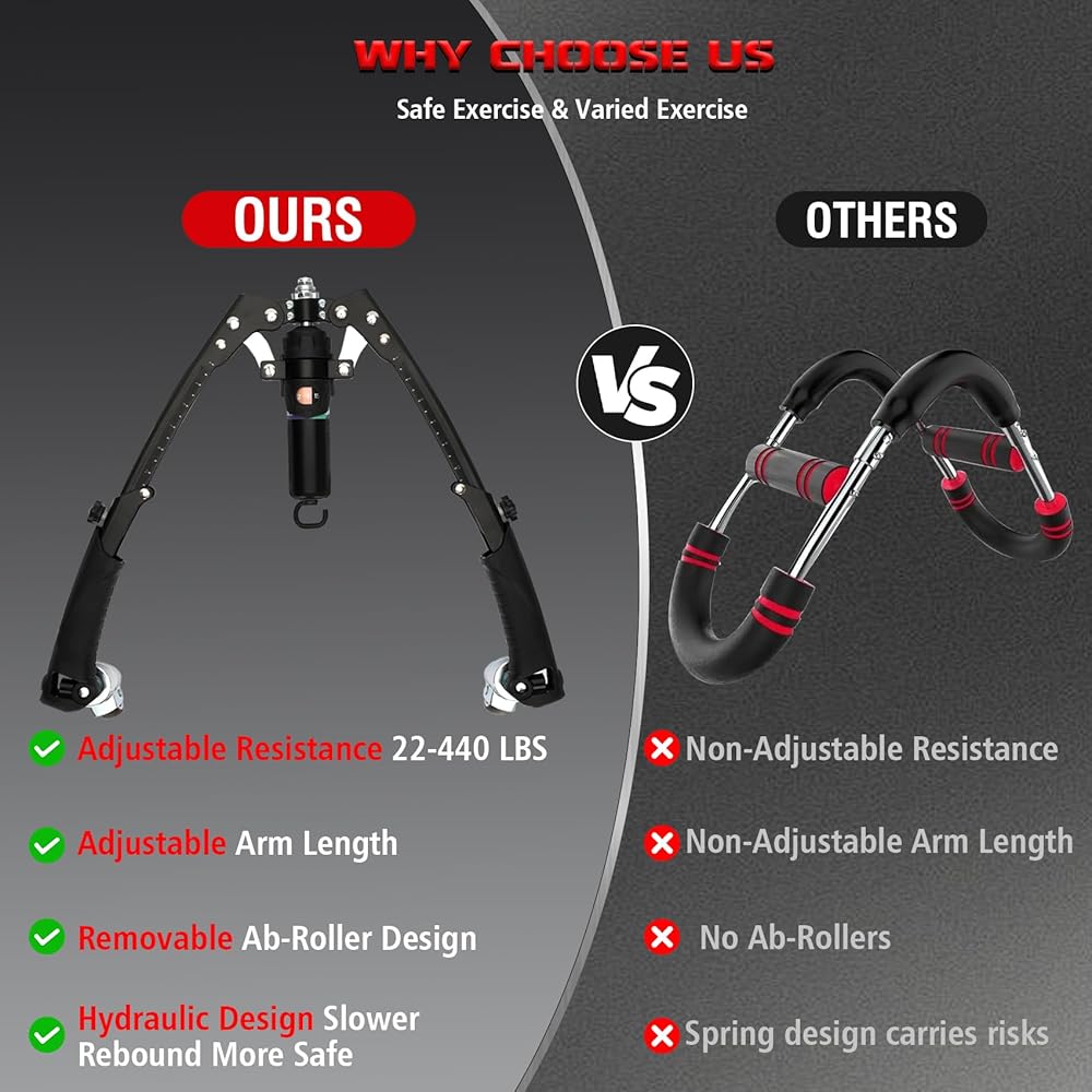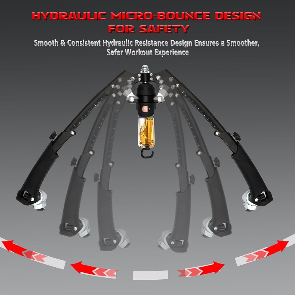 مقاومة هيدروليكية قابلة للتعديل من 22 إلى 440 رطلاً: يتميز مدرب الذراع الملتوي هذا بأسطوانة هيدروليكية مطورة. ما عليك سوى تدوير مقبض الأسطوانة الهيدروليكية لضبط المقاومة بحرية من 22 رطلاً إلى 440 رطلاً، مما يسمح للمبتدئين أو المحترفين بالعثور على كثافتهم المثالية وبناء صالة ألعاب رياضية منزلية متعددة الاستخدامات.