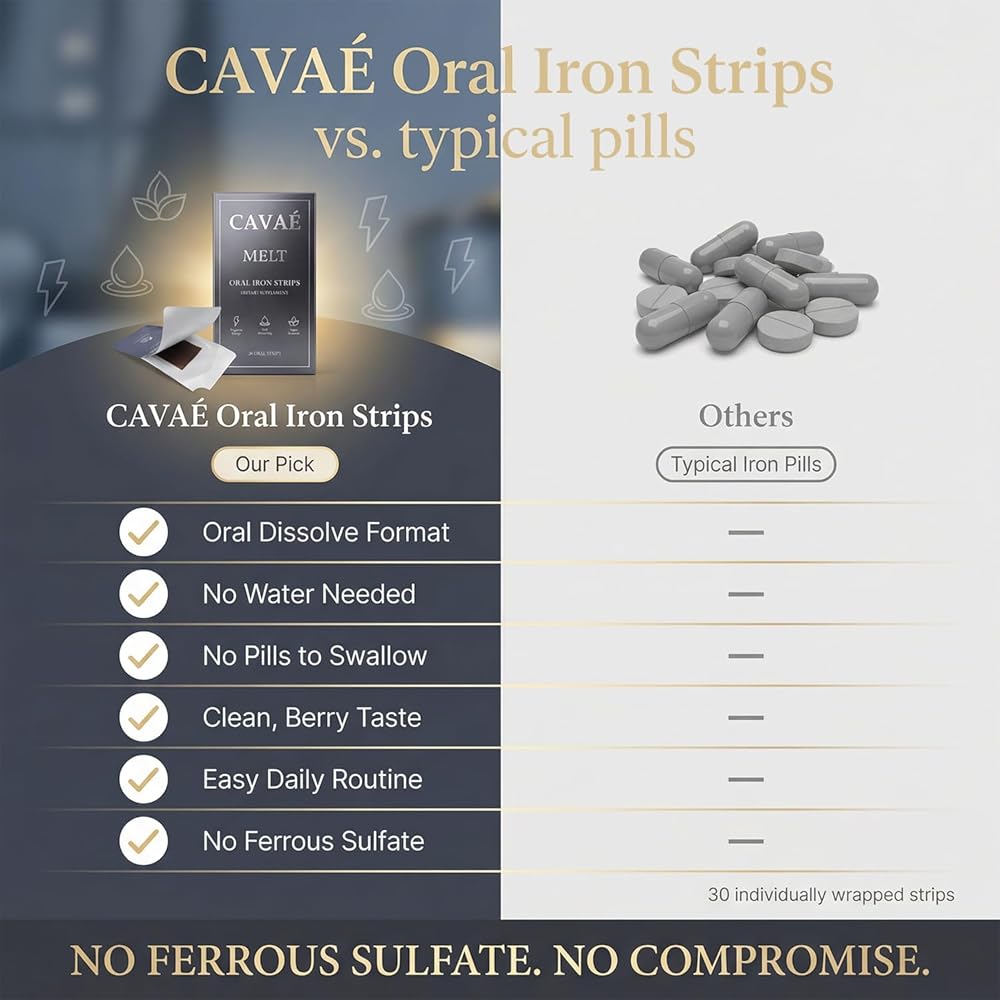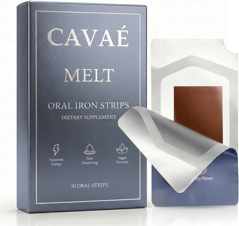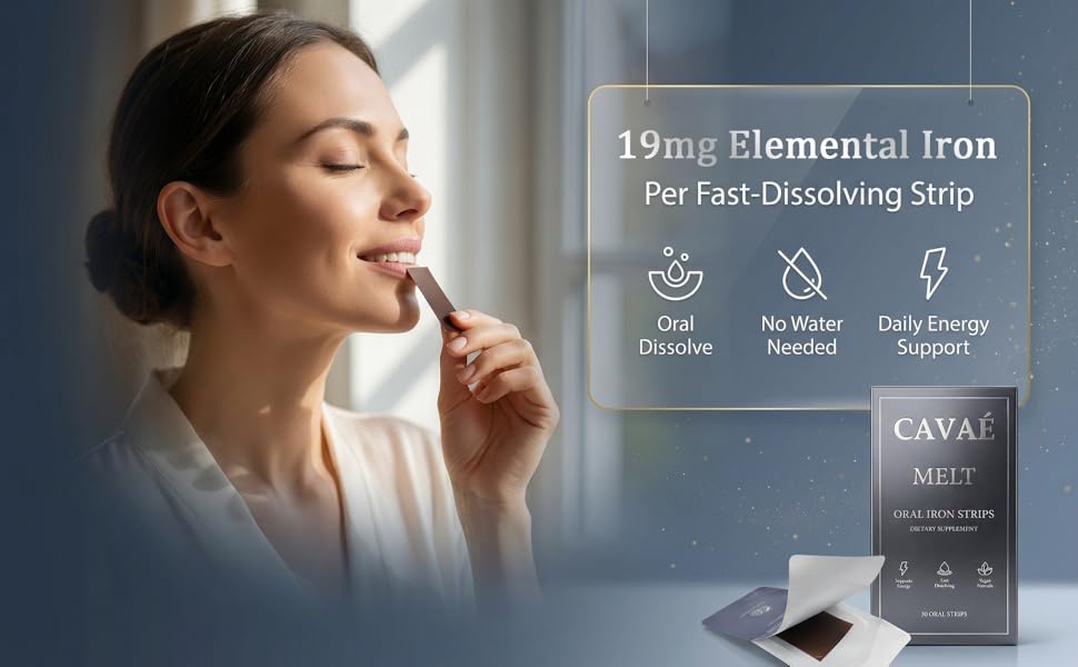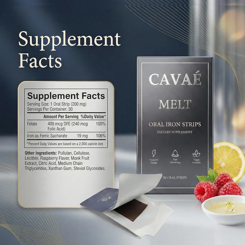 Cavae Oral Iron Strips - Oral Dissolving Film, Ferrovia Iron Supplement for Women, 19 mg Iron with Folate, Fast-Dissolve, Raspberry Flavor, 30 Day Supply