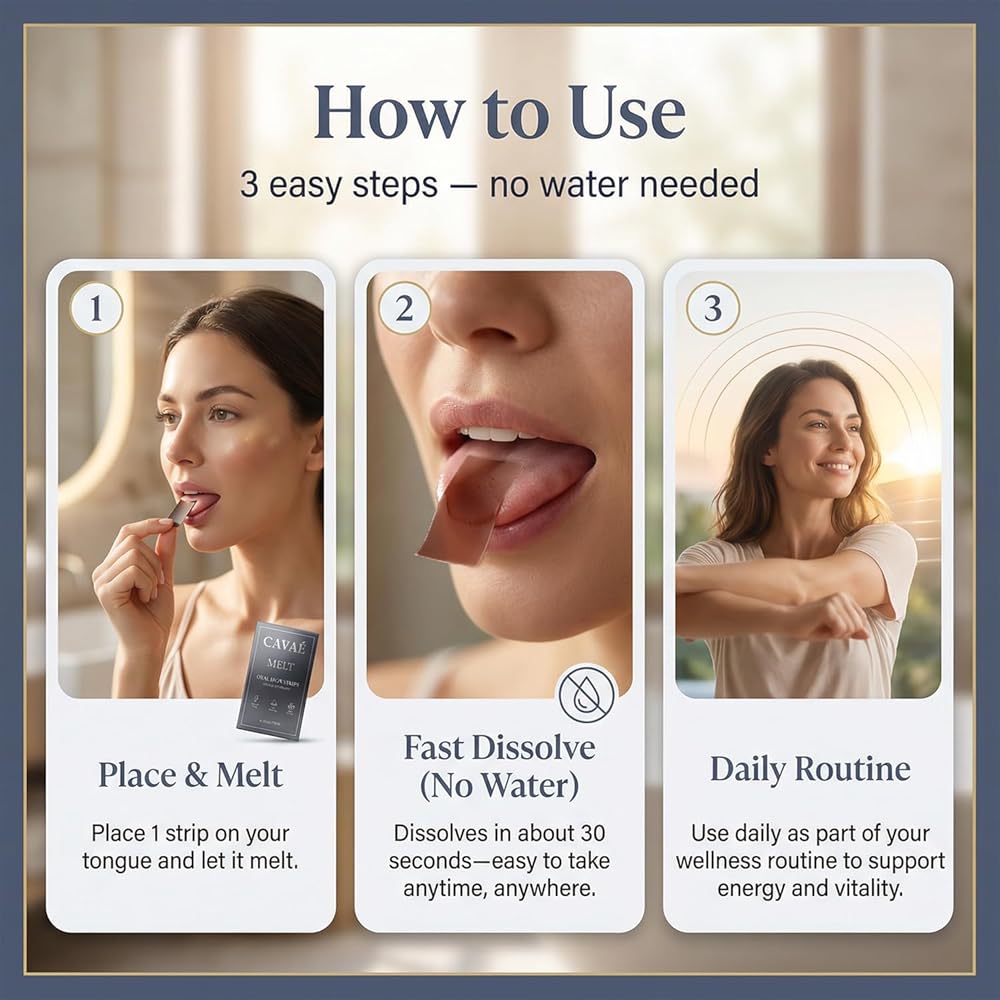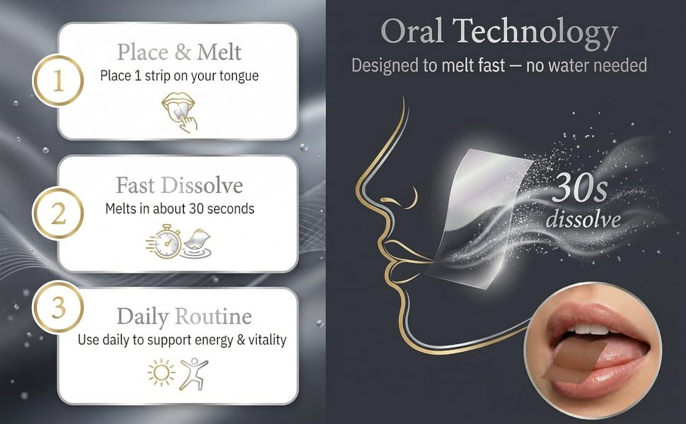 【استخدام سهل بدون ماء】ضع شريطًا واحدًا على لسانك واتركه يذوب تمامًا. لا حاجة للمياه. مثالي للصباح المزدحم أو السفر أو العمل أو عندما تريد روتينًا سريعًا وخاليًا من الفوضى