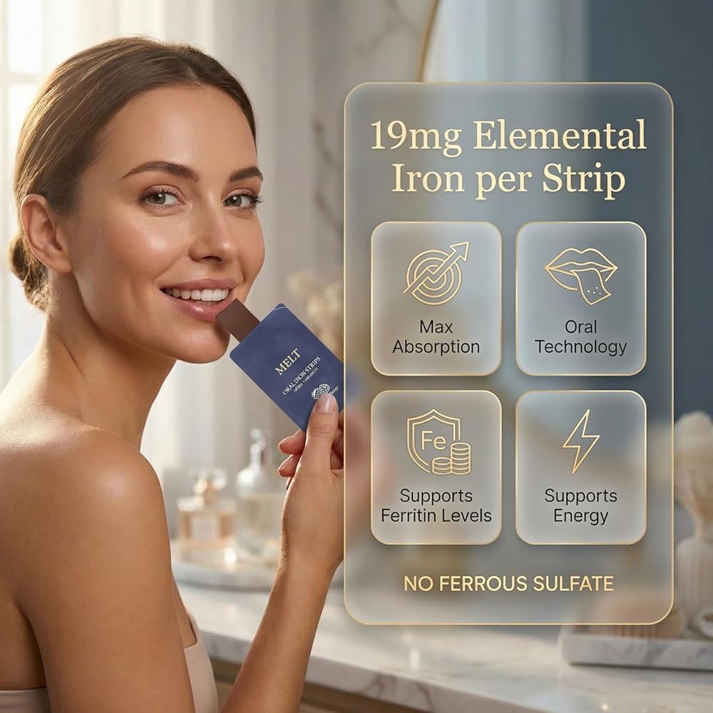 【مكونات مختارة بعناية】يحتوي كل شريط على 19 ملجم من الحديد الأولي لكل شريط مع حمض الفوليك المضاف، تم تركيبه في شريط فموي لطيف مصمم لسهولة الاستخدام. نكهة التوت