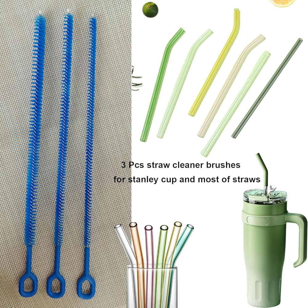 3-Pack Multi-Size 12.6”long Straw Cleaner Brush for Stanley Cup, Extra Long Reusable Straw Brush for Tumbler, Metal, Silicone, Glass Straws for Baby Bottles, Hummingbird Feeders, Pipes, Sippy Cups, Yeti, Pipe Cleaner for Tube