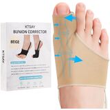2PCS Bunion Corrector for Women & Men, Big Toe Straightener with Splint & Pads, Comfortable & Breathable for Day/Night Support, Hallux Valgus Pain Relief Non-Slip Socks (1, Beige)