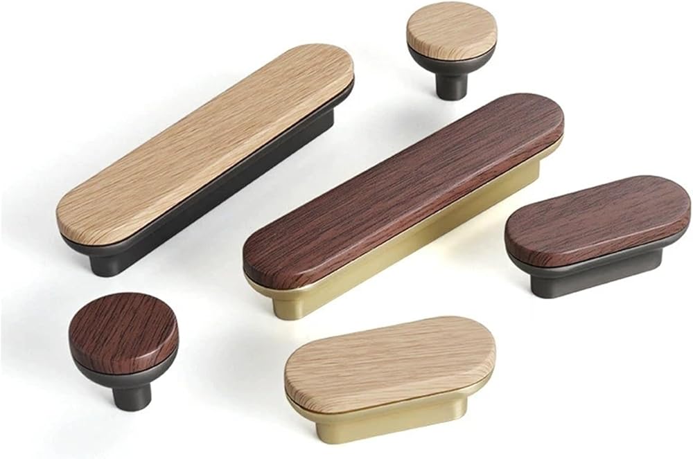 Wooden Furniture Handles Solid Metal Wood Grain Kitchen Door Handle Drawer Wardrobe And Cabinet 1Pcs