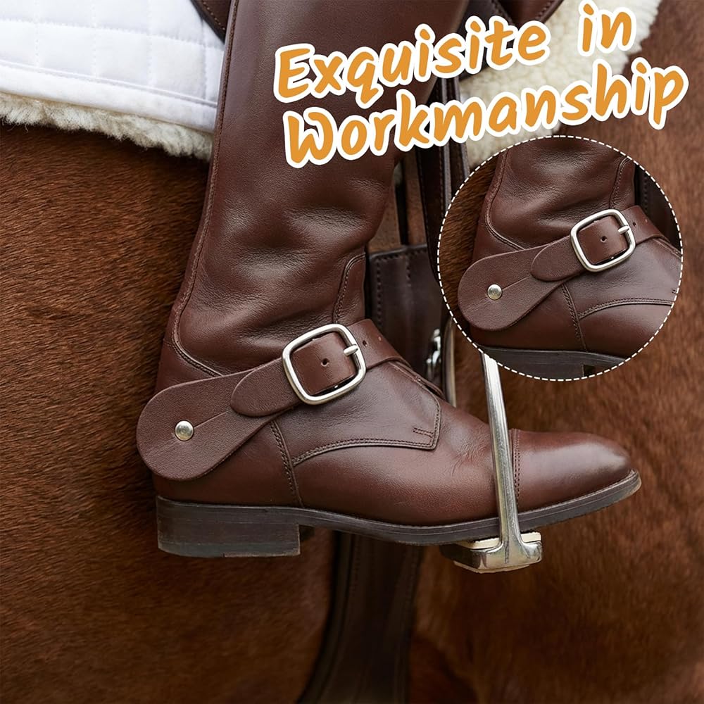 Superior and Durable: Spur straps are crafted from premium leather and feature aluminum alloy buckles. Lightweight, sturdy, and odorless, they are stylish and modern, tear-resistant, and durable, making them suitable for frequent equestrian use.