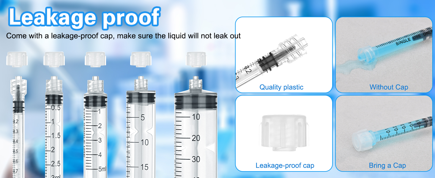 • المحاقن 1 مل: تحتوي كل علبة على 20 حقنة (بدون إبرة) مع غطاء، كل منها معبأة بشكل فردي، آمنة ونظيفة