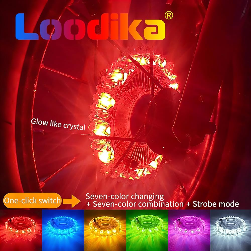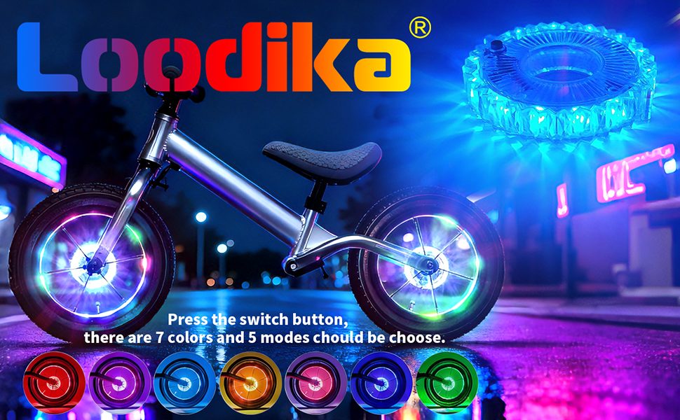 • BE COOL! This Bike wheel lights has the function of vibration sensing. After the bicycle is stationary for 30 minutes, the bike wheel lights will automatically turn off, and when the bicycle moves, It will automatically turn on! 4 light modes:Multicolor fast change > Multicolor slow change> color-changing option (7 colors)“constant on” - no flashing. Attract attention and compliments everywhere you go.