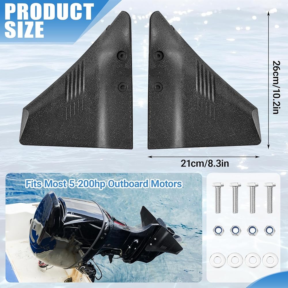 1 Set Boat Hydrofoil Stabilizer for Marine Outboard and Sterndrive Motors with Dorsal Fin Style and Nylon Black Compatible with Mainstream Engine Brands
