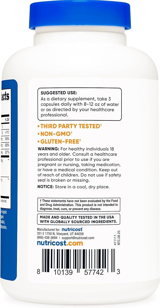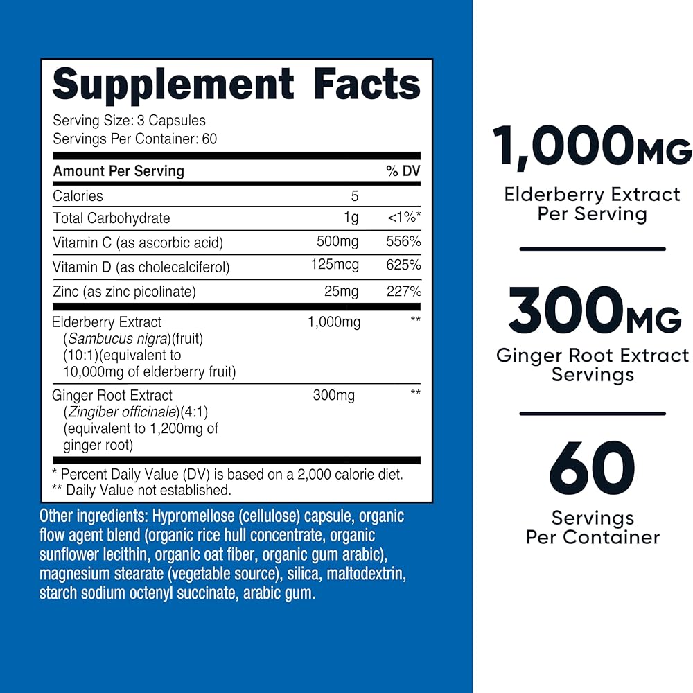 مستخلص جذور نبات البلسان والزنجبيل من نوتريكوست (1300 مجم) مع فيتامين ج (500 مجم)، زنك (25 مجم) وفيتامين د (125 مجم) 180 كبسولة - مكمل نباتي صديق للبيئة، خالي من الكائنات المعدلة وراثيًا، خالي من الغلوتين، 60 حصة